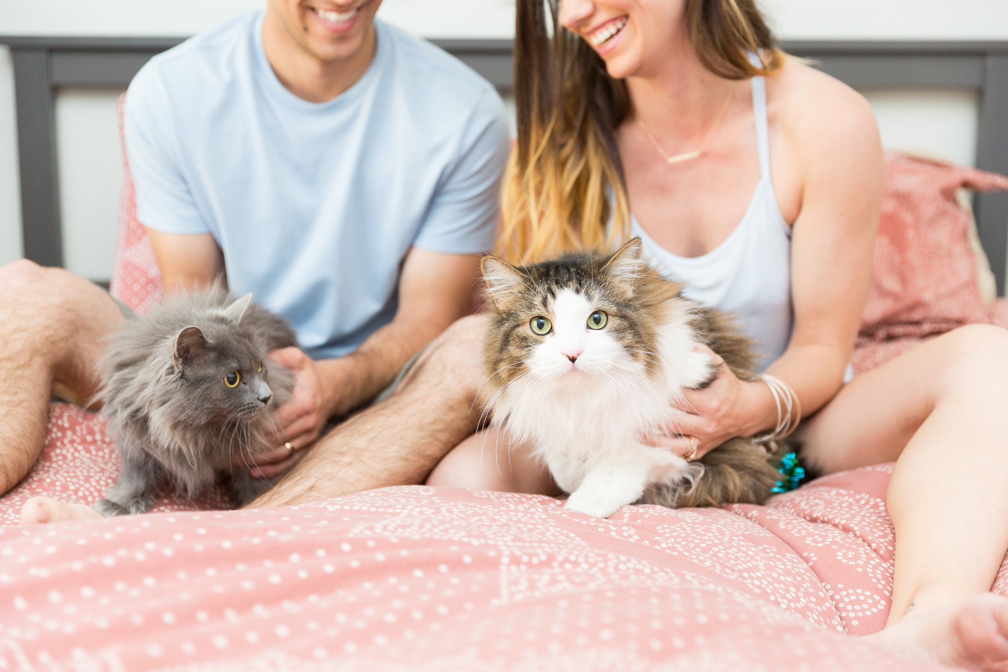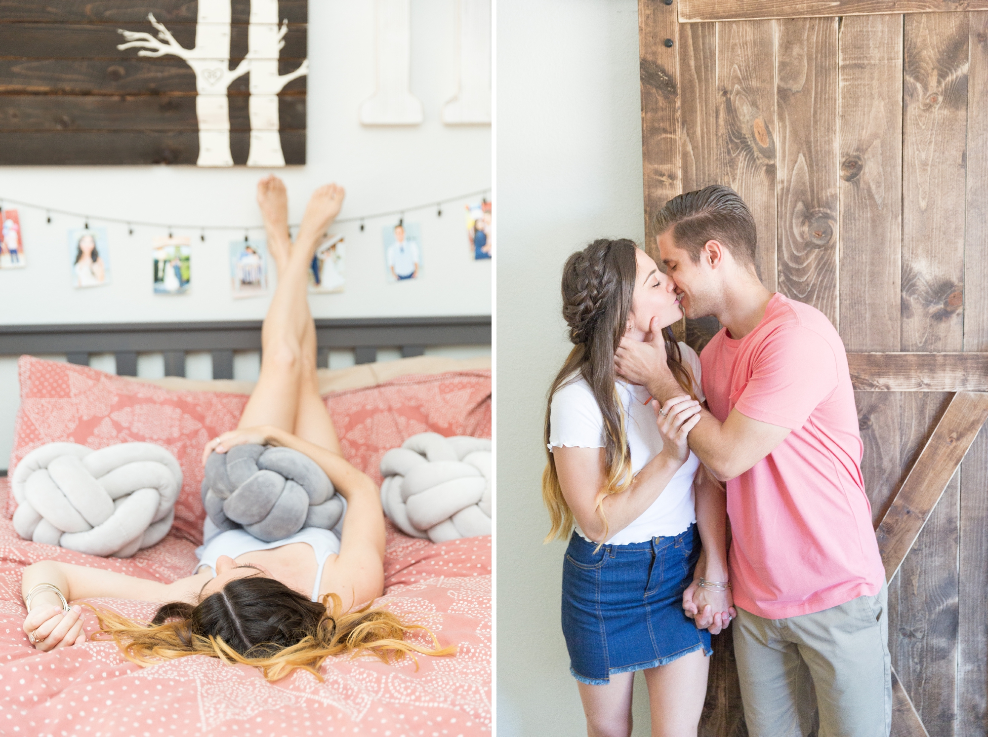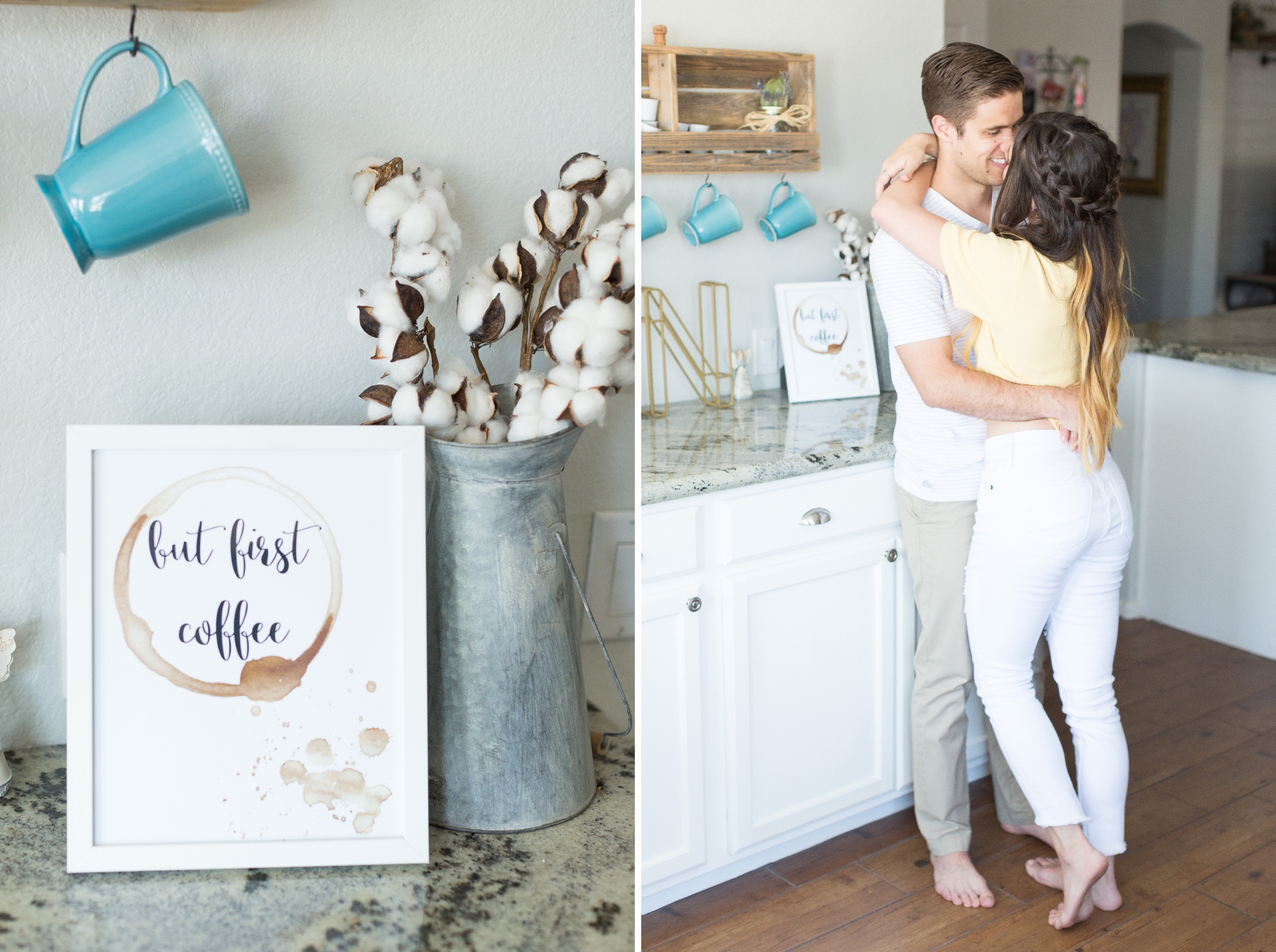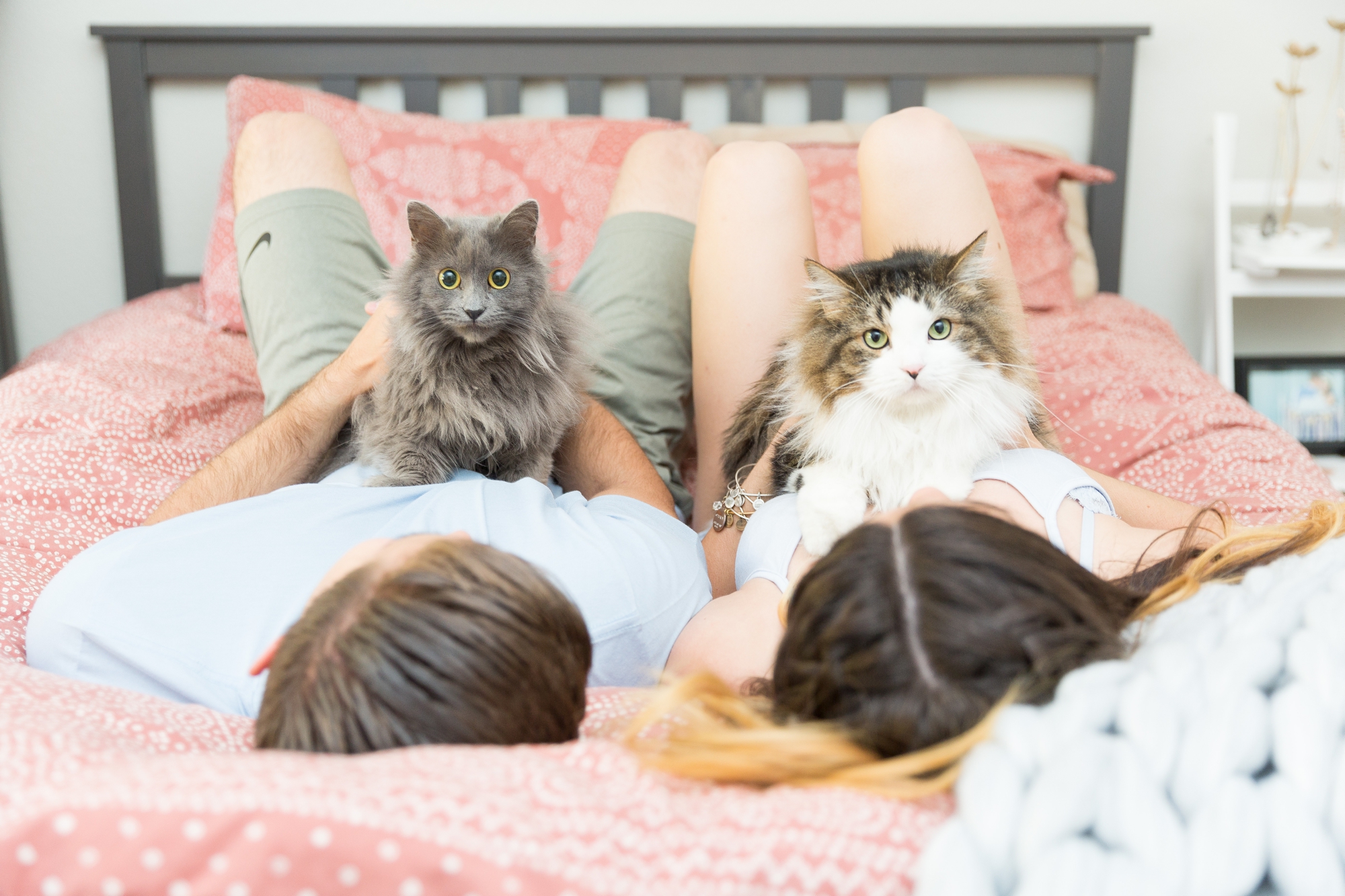 There’s something so intimate and special about creating memories in a home you share together. What makes those moments even sweeter? When they’re captured for you to remember forever, even when your hair is gray and your kids have a home of their own. The feeling of your bare feet on the hard wood, your cheeks touching as you relax on the couch, and the familiar grip of your favorite coffee mug in hand. I had the pleasure of capturing a small slice of Cooper and Jenny’s haven they call home, and it was so immensely sweet! I was lucky enough to photograph their engagement session and beautiful wedding, so this made my heart so incredibly happy. Seeing the photos I’ve already taken of them hanging on almost every wall reminds me that this is the ENTIRE REASON why I do what I do! *Happy sigh* I’m just obsessed with these two, and their kitties of course who behaved like little angels! The Nelson’s have created such a beautiful home together and their marriage is just beginning, with many adventures awaiting (just like Carl and Ellie)! So grab a fuzzy blanket and enjoy this cozy session inside their little piece of paradise!