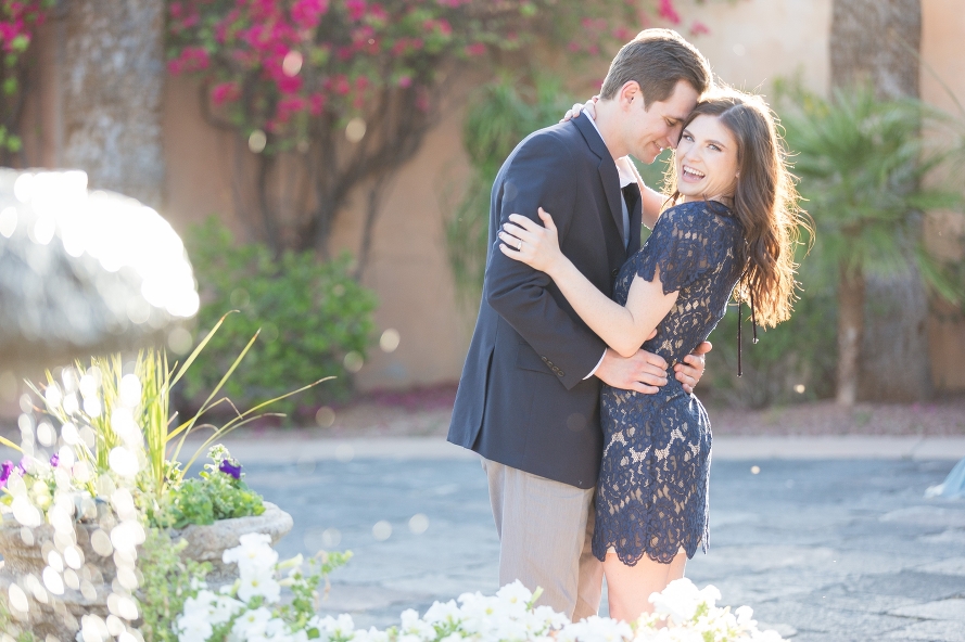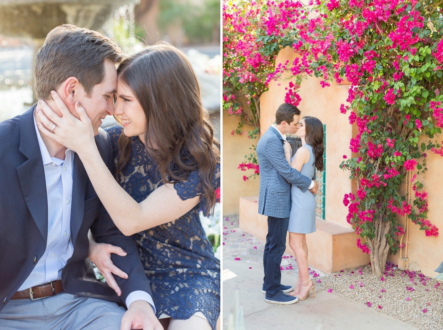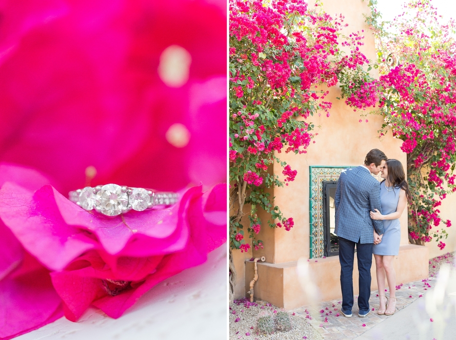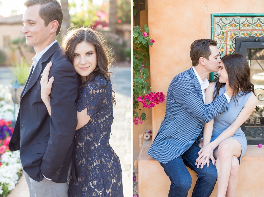 Carly and Kyle are two of the sweetest, most beautiful souls and I’m so excited for their Winter wedding! We had the best time exploring through the stunning nooks of the the resort, every corner looking like a Tuscan sliver of paradise. With bright bougainvillea flowers and golden light, it was the perfect way to capture their love. We shot in front of the lemon-tiled fireplace where he proposed, and they sat in the same spot where their lives changed forever. It was nothing short of dreamy! We even recreated a prom pose, and we laughed as he held her tight and kissed her cheek. I couldn’t be more elated for this genuine couple, and I know they will live happily ever after, and then some. Here’s to many more champagne pours near the fire and candlelit dinners, and many more days like this one in their future!