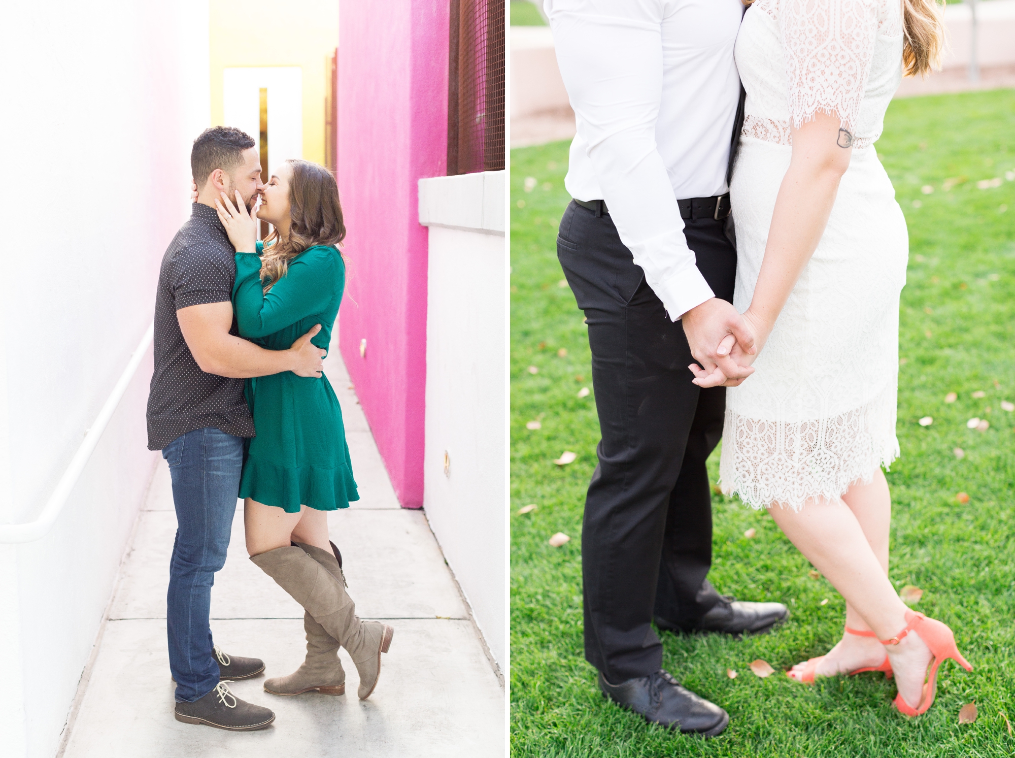 There were so many people around, but you would never know it. These two were in their own little world, taking in every embrace and laugh, holding onto this short time as an engaged couple. The sun was sinking fast behind the Scottsdale mountains, illuminating her hair with a soft orange halo as her curls danced in the cold breeze. We smiled as they told me their love story, how Taylor took her to the Scottsdale waterfront, nervously looking for his queue to get down on one knee. They were celebrating his birthday, so Emma had no idea it was happening that day, which made the surprise so sweet and unforgettable. And as we explored around the colorful buildings and bright flowers at their engagement session, I fell more in love with not only their love, but their friendship. When you marry your best friend in the whole world, there is nothing more exciting! And that’s why I am so incredibly elated to be capturing their gorgeous wedding in the Fall, filled with many more laughs and unforgettable moments! Emma and Taylor, you remind me so much of my husband and I when we experienced this season in our lives, and that’s yet another reason that this time for you is so dear to my heart. Never give up the role as each other’s best friend, and always keep the other laughing like you did on this chilly winter day. It’s going to be such a wonderful, crazy, beautiful ride. So let the countdown to your big day begin!
