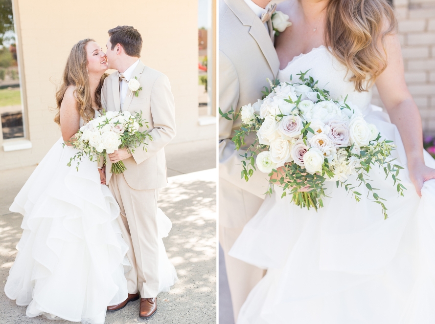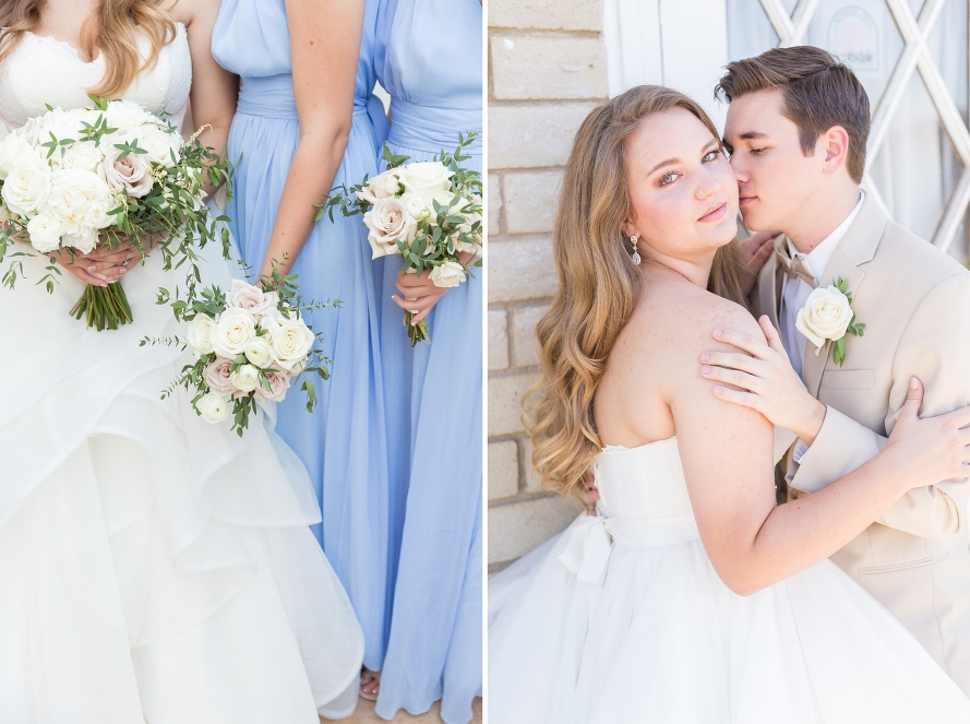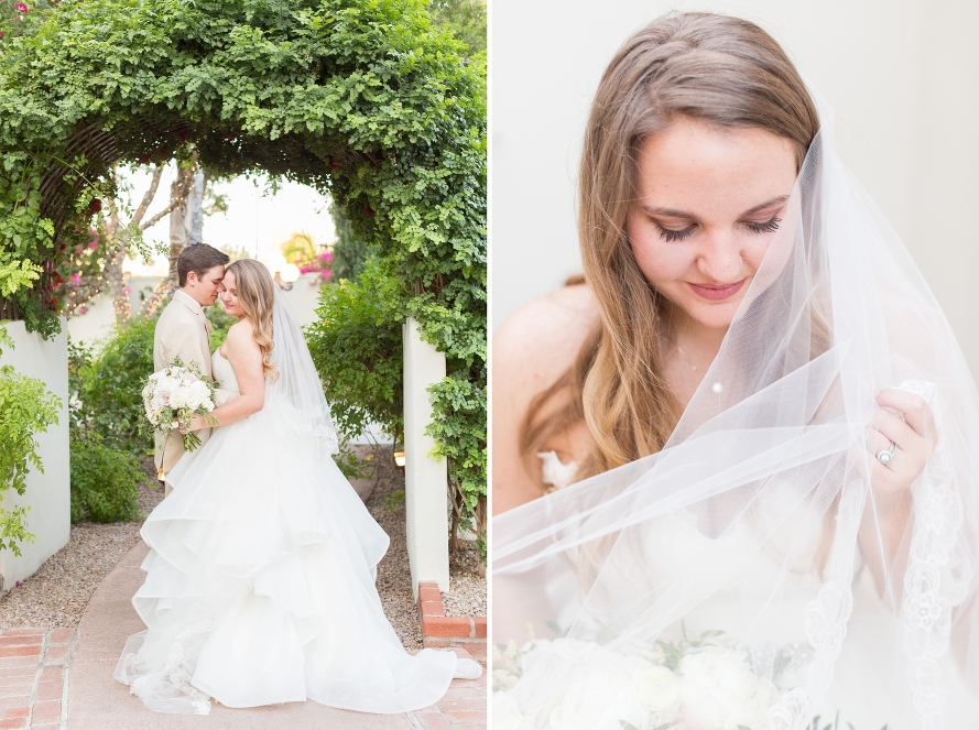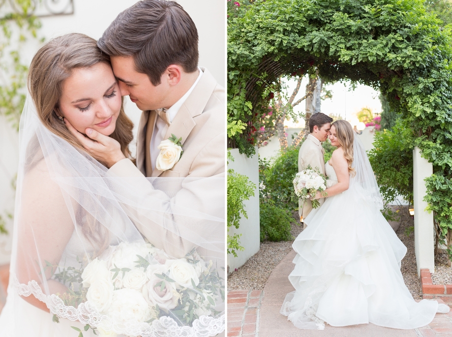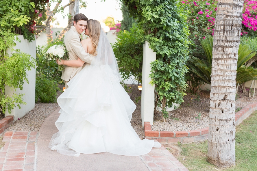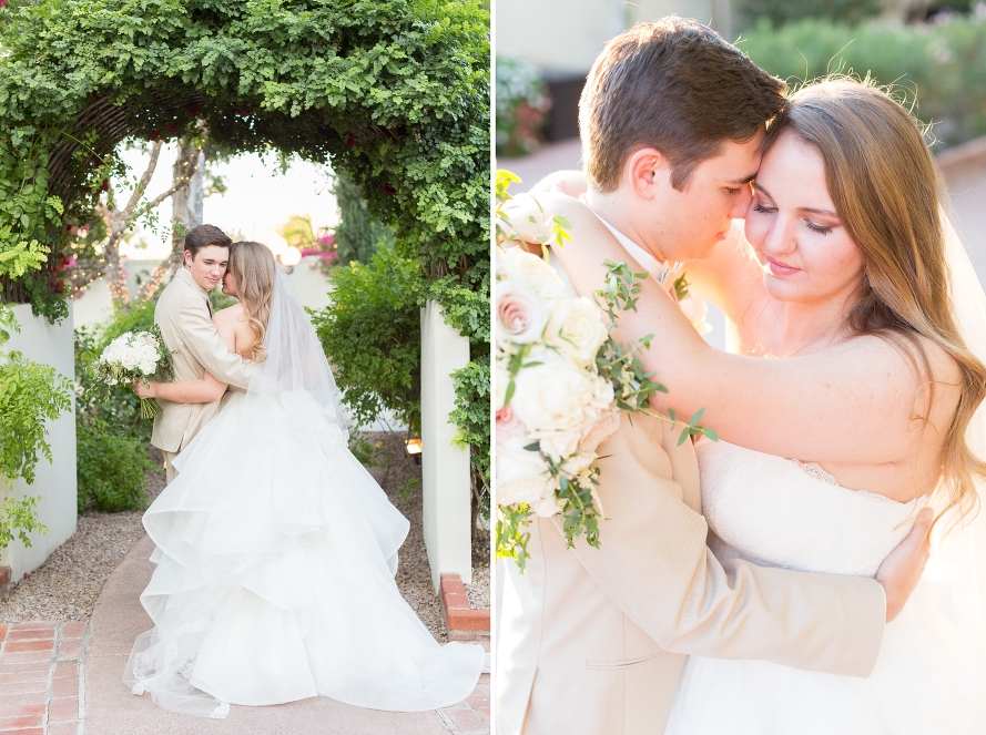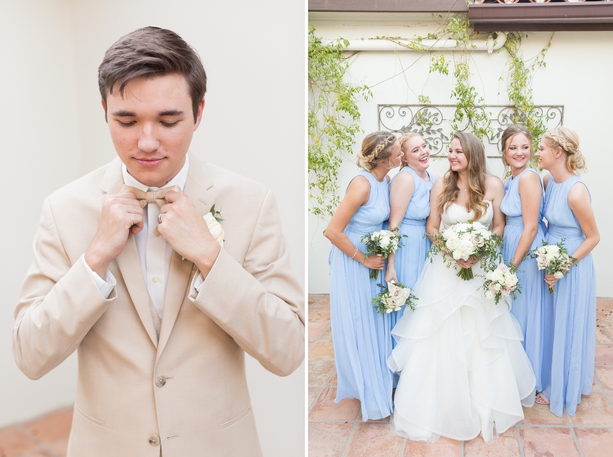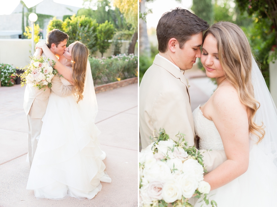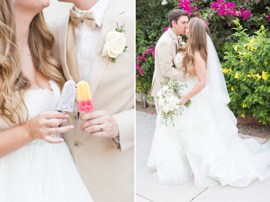 Courtney & Alex’s neutral wedding incorporated dusty blues, soft champagnes, and fluffy ivory flowers that emulated a romantic feel of tranquility throughout the entire day. The flowy blue bridesmaid dresses mixed with the sandy groomsmen suites tied in their color story perfectly and accentuated the summer vibe so effortlessly. And we need to talk about how these two were absolute rockstars when it came to our toasty Arizona weather! It was 114 degrees this day, and you would never know from looking at their sweet smiles! They were so relaxed and willing to do anything for their perfect shots, and I was so thankful to work with them! Guests enjoyed delicious popsicles to beat the heat as we shot their portraits while trickling into their classic reception space. White linens with gold vases and ivory florals that cascaded down above romantic flickering candles gave a relaxed yet dreamy ambiance to celebrate their love. The night carried on with laughter and dancing, followed by dazzling fireworks set to Disney music (a girl after my own heart)! They ended with a glittering sparkler exit as they headed off to their Disney cruise, wearing their bride and groom Mickey ears while they hopped into their getaway car. It was the most perfect day, and such a wonderful way for me to end this busy season! These two have the most beautiful story with an even more beautiful love, and I was so blessed to be able to be a part of this experience. Congratulations Alex and Courtney, may your fairy tale live on into your happily ever after!