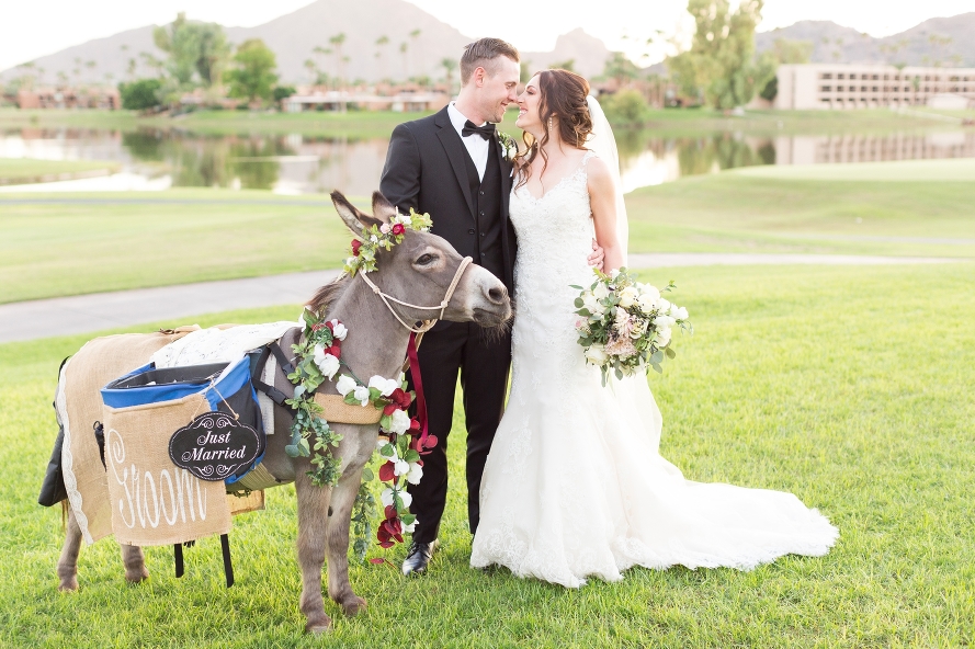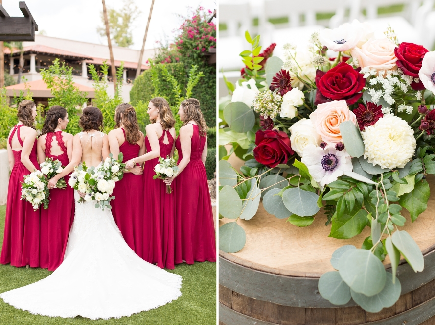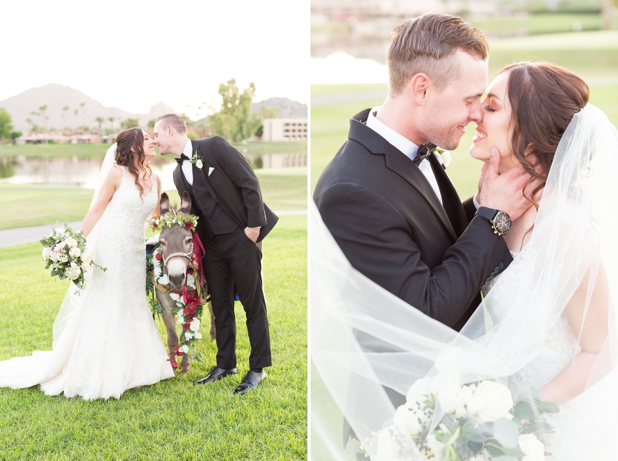 Tracy and Kyle’s wedding was not only visually breath-taking, but so full of warmth and genuine happiness from every person who was lucky enough to be there! From the moment I stepped in the bridal suite, I was surrounded by those who were so excited to be a part of this special day. Being the first Saturday of the Fall season, their deep red, classic pallet was the perfect way to ring in the best time of year! And their flowers, eek! Crisp whites mixed with soft pastels had me drooling, especially during the reception as everyone chatted at their tables. Oh, not to mention that adorable donkey who I wanted to adopt into my family…sorry I kept touching your ears little guy. They were just so soft! I highly recommend every wedding to have a beer burro during cocktail hour, just the best! Also, the groom had an outfit change into a burgundy tux, and it absolutely gave me life! Such an amazing touch for the second half of the celebration, way to go Kyle! But in all seriousness, these two have my heart. It was such a privilege to stand by them as their lives changed forever, and I will always remember this day. Tracy and Kyle, I want you to forever look back on these memories and read your vows often. I know when you’re rocking in your chairs with deep laugh lines one day, you’ll look back and think of these crimson reds and black bow ties, still crisp in your minds no matter how much time passes. I know you’ll smile and never forget how you said your vows and never knew just how true your words would become. And that is a beautiful thing my friends. So here’s to the exciting road ahead!