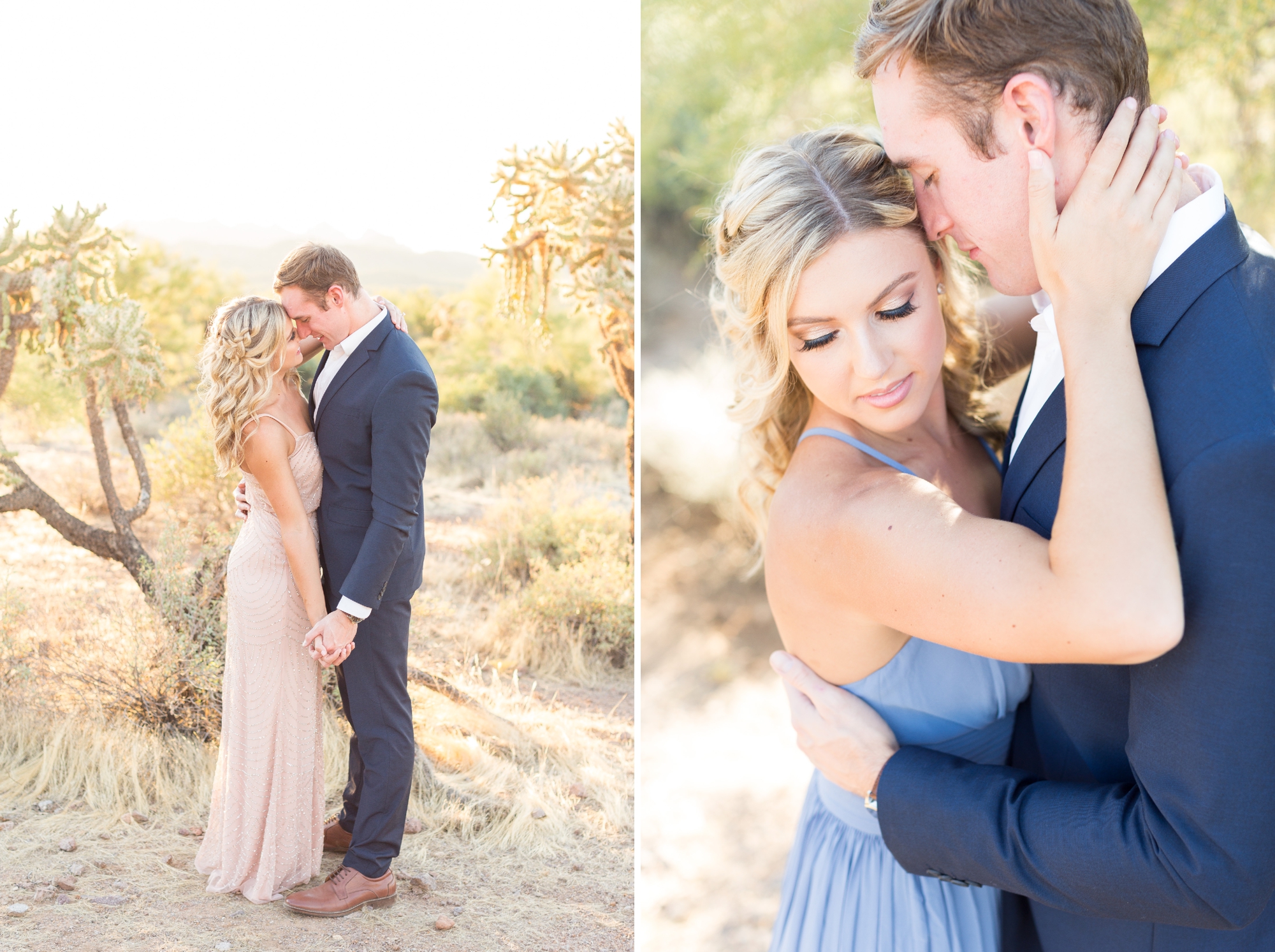 Cara and Riley’s sweet story and beautiful tenderness for each other are enough for me to completely fall in love with their union, but add their incredible kind personalities and simply I can’t handle how lucky I am to have met them! From the moment we first sipped our ice waters on that hot July day together, I knew that this experience was going to be so special. The way they look at each other and hold one another makes me so excited not only to capture their wedding day, but to watch their marriage grow and stand the test of time. And their engagement session was pure magic. The glowing desert light and blush pink mountains mimicked her golden hair and sparkly dress in the sunset, while his bright blue eyes popped so vividly against his dark blazer. They held hands, careful not to step on cactus as she held her dress with the wind dancing through her curls, taking in their visit to the desert from their windy city home. And when we saw a snake, Riley had no fear and was ready to step in at any time if that little critter got wise (almost giving me a heart attack from how close he got to it)! I had the best time with them, and I can only imagine the laughs we’ll share on their big day! Cara & Riley, I’m so honored to be a part of this amazing experience with you, and I’m so grateful for your new friendship. Your joy is contagious! I’m so excited to have witnessed the beginning of this new chapter, and the makings of filling many more photo albums in the years to come!