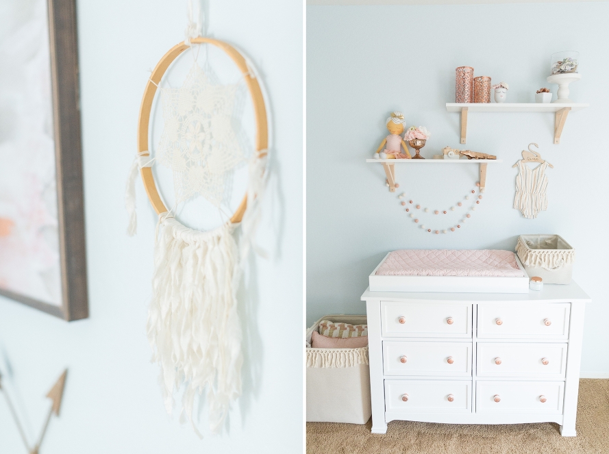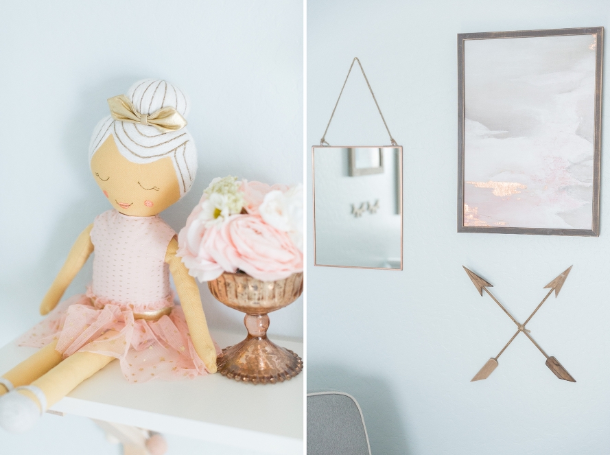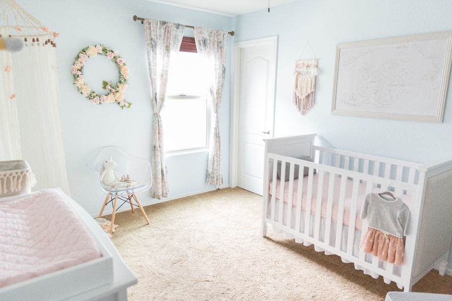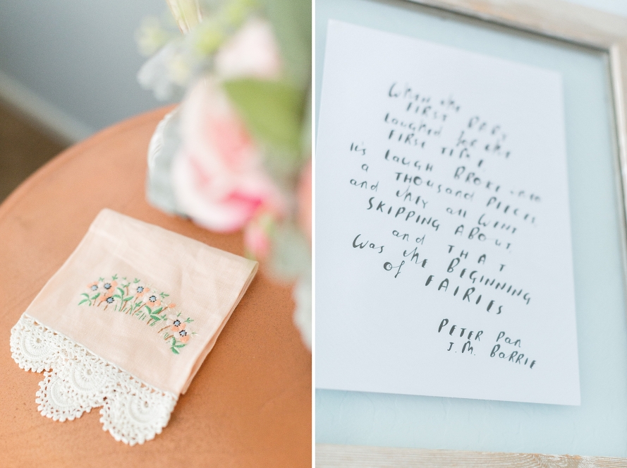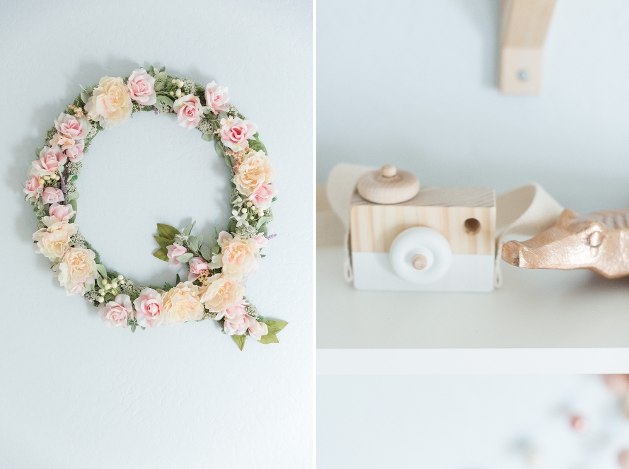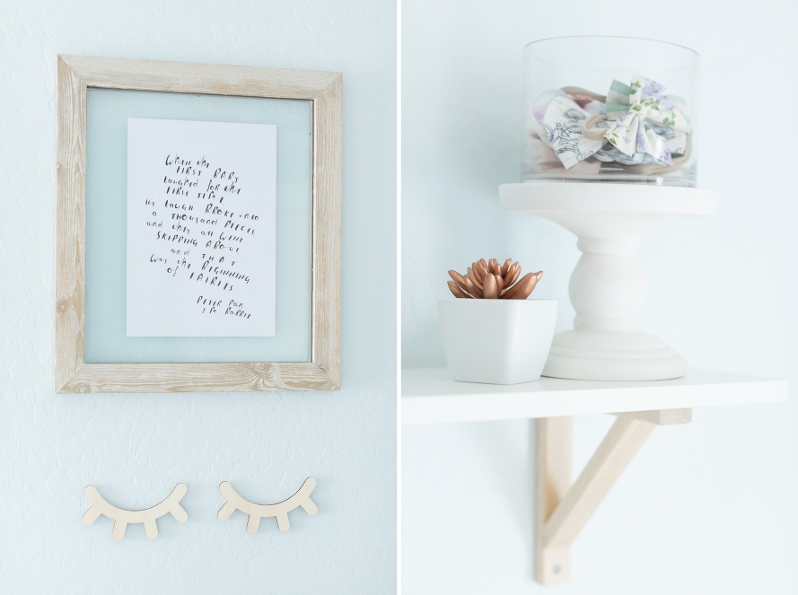 I can’t begin to explain how surreal it felt to put this nursery together, and now Jerrin and I joke how it’s our favorite room in our house (and that it’s way cooler than ours)! And I know that she may not sleep in here for a while, it’s going to get messy, pretty things will be broken or stained, and have been told “we probably won’t go all out for our second kid’s nursery.” But if we’re really being honest, the nursery is for the parents, fulfilling that need to create a space for new baby! And I’m ok with that! When designing her room, I actually pulled a ton of inspiration from the beautiful weddings I’ve shot this year! I loved the dusty blue trend which inspired our paint choice, and of course I mixed it with blush because it’s my absolute favorite! I’ve known for years that no matter what we were having, I would incorporate aspects of Neverland in the nursery because I’m obsessed with Peter Pan! The idea of little ones never growing up is also just about the sweetest thing ever 🙂 If you look hard enough, you can see subtle Neverland touches, like a map, stars, indian arrows, a quote from the book, and a rose gold crocodile. The crocodile was actually the first piece in the room given as a gift, which inspired the rose gold aspects throughout! Love. I found most of the sweet little pieces online from tons of different brands, and made the oversized floral Q out of cardboard, hot glue, silk florals/greenery, and a lot of patience haha! Speaking of that particular letter, be sure to search for her name in one place in the room! We’ve loved that name for a while, and when we found it was a girl we knew that was what she would be called. It still doesn’t seem real that in two short months we will be a family of three, but when I come in here it sinks in and my nerves seem to vanish. We’re so excited for the road ahead and I couldn’t be more thankful to be sharing this crazy journey with my best friend. As the boy who never grew up said, “To live will be an awfully big adventure.” And I can’t wait for this one to begin.