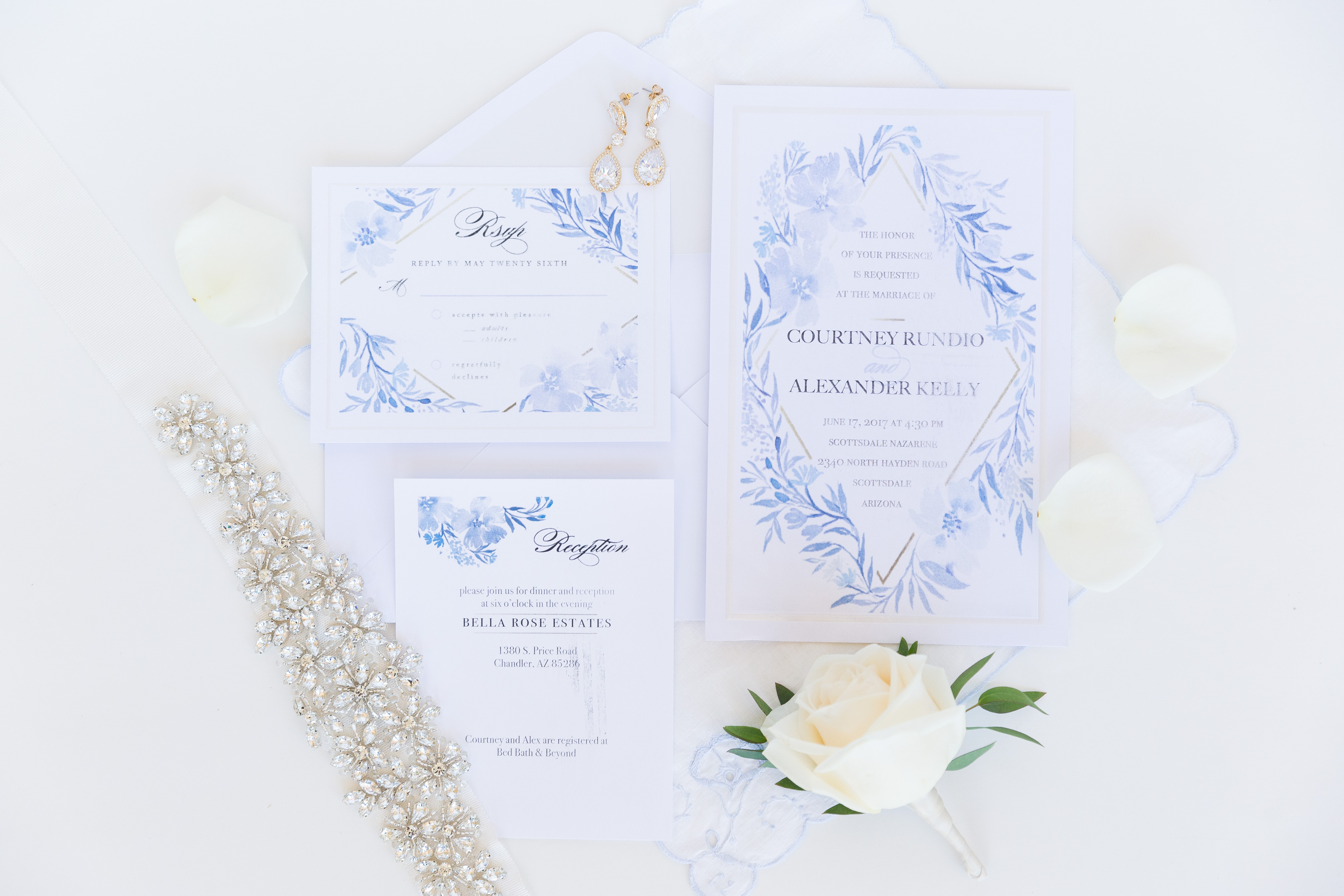Courtney & Alex’s neutral wedding incorporated dusty blues, soft champagnes, and fluffy ivory flowers that emulated a romantic feel of tranquility throughout the entire day. The flowy blue bridesmaid dresses mixed with the sandy groomsmen suites tied in their color story perfectly and accentuated the summer vibe so effortlessly. And we need to talk about how these two were absolute rockstars when it came to our toasty Arizona weather! It was 114 degrees this day, and you would never know from looking at their sweet smiles! They were so relaxed and willing to do anything for their perfect shots, and I was so thankful to work with them! Guests enjoyed delicious popsicles to beat the heat as we shot their portraits while trickling into their classic reception space. White linens with gold vases and ivory florals that cascaded down above romantic flickering candles gave a relaxed yet dreamy ambiance to celebrate their love. The night carried on with laughter and dancing, followed by dazzling fireworks set to Disney music (a girl after my own heart)! They ended with a glittering sparkler exit as they headed off to their Disney cruise, wearing their bride and groom Mickey ears while they hopped into their getaway car. It was the most perfect day, and such a wonderful way for me to end this busy season! These two have the most beautiful story with an even more beautiful love, and I was so blessed to be able to be a part of this experience. Congratulations Alex and Courtney, may your fairy tale live on into your happily ever after!