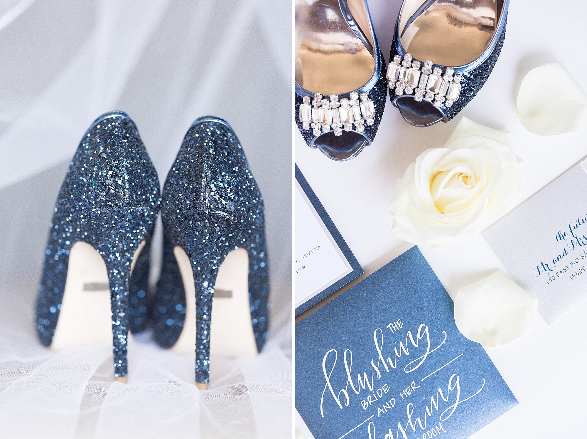 After they shared their last kiss and “giggle” of our bridal session, we entered their dazzling reception to behold the stunning decor strewn across each table with care. The mercury candles flickered beneath towering blue and white flowers, with silver and white tableware placed perfectly at each setting. Blue light flooded up the walls creating a dreamy ambiance with a classic elegance. If anyone couldn’t guess that Emily was in the wedding industry, they knew now! 😉 The night flew by in a blink, with incredible speeches and a musical performance from family that had us laughing until our cheeks were sore. Matt and Emily, I can’t tell you enough what an absolute pleasure it’s been being a part of this entire experience with you and your families! I will treasure these moments and I couldn’t have thought of a better way to kick off my Fall wedding season! Let’s clink our copper tins together for the beautiful memories of #swissandhismrs!